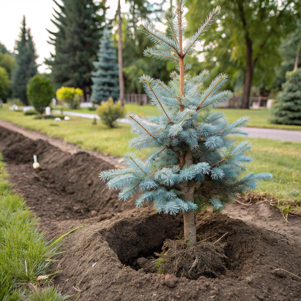 Голубую ель можно высаживать в любое время года, но особенно благоприятен текущий сезон — именно сейчас растение активно укореняется и идет в рост. Это идеальный момент для посадки с максимальной вероятностью приживаемости и быстрым развитием саженца.