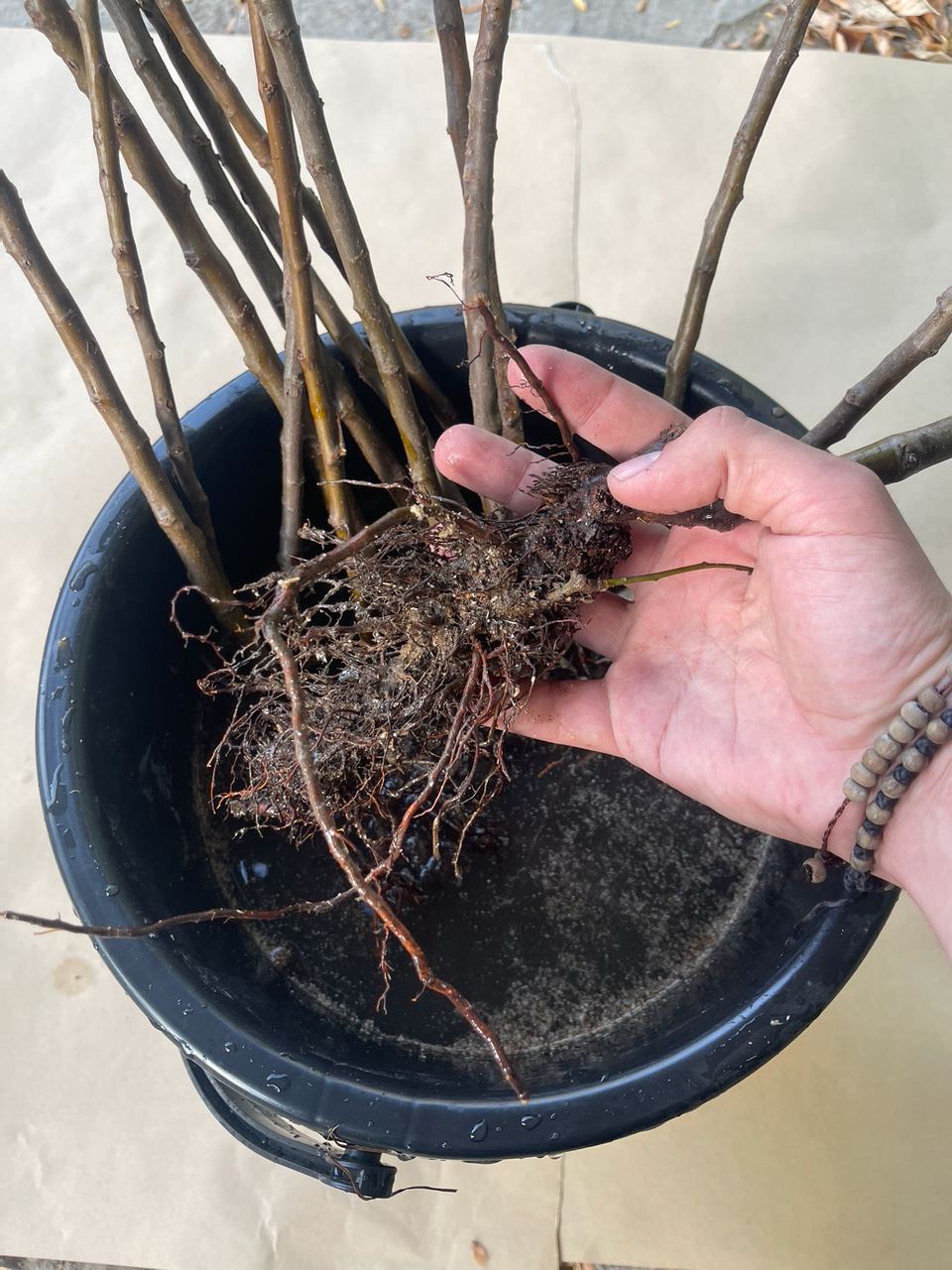 Вы можете убедиться в том, что саженец живой аккуратно царапнув его корень. Под темной кожицей вы увидите белый, влажный молодой ствол, что свидетельствует о здоровье растения.