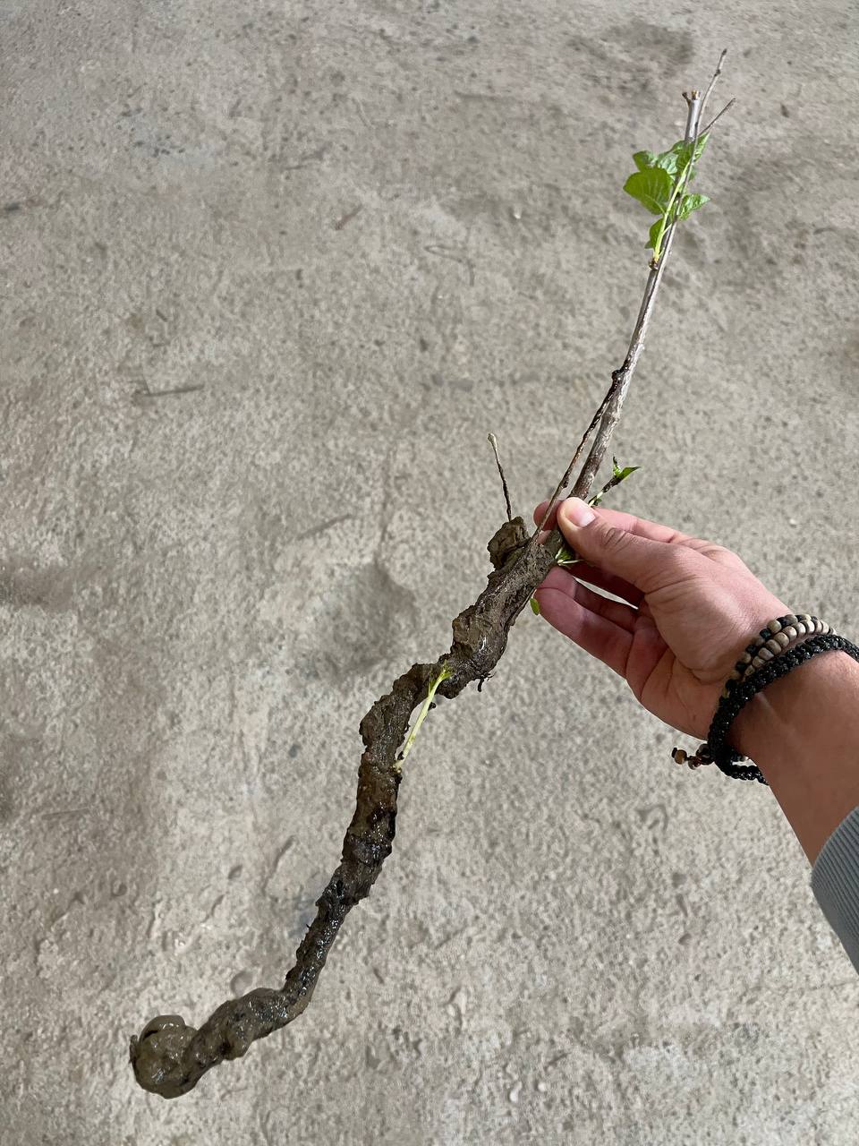 Сначала мы отбираем только лучшие, здоровые растения с развитым корнем и крепким стеблем. Снимаем с них листья, так как лист все равно в процессе транспортировки опадет, но все это время будет тянуть энергию со стебля и корня.