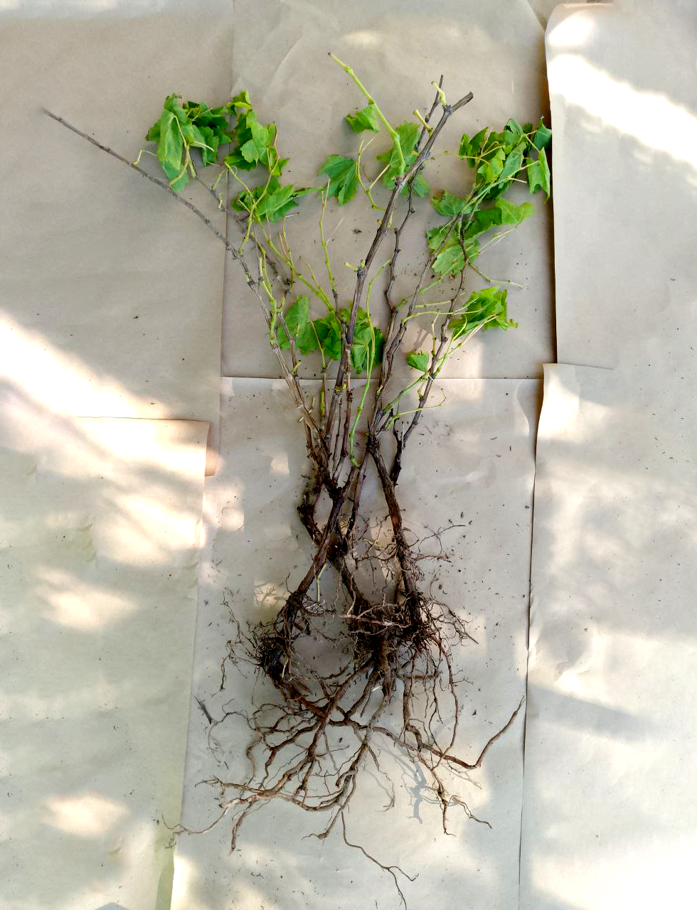 Сначала мы отбираем только лучшие, здоровые растения с развитым корнем и крепким стеблем. Снимаем с них листья, так как лист все равно в процессе транспортировки опадет, но все это время будет тянуть энергию со стебля и корня.