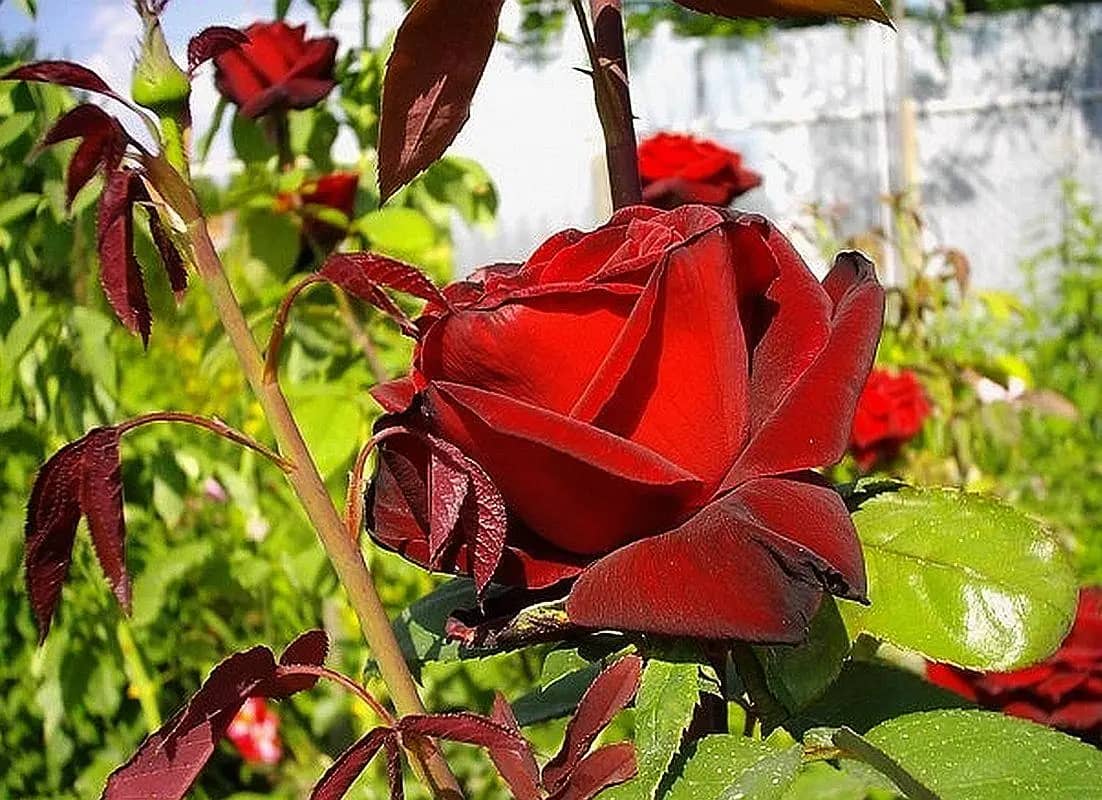 | Цветы густо-розовые с малиновым отливом, лепестки плотные, красиво свернуты. Аромат лёгкий, свежий. Крона округлая, густая, придаёт саду гармонию и аккуратность. Отличный выбор для выращивания в горшках, вазонах или клумбах у входа в дом. |