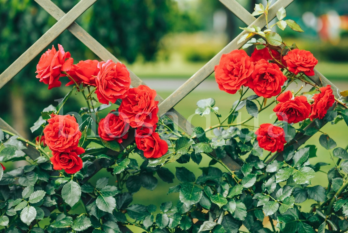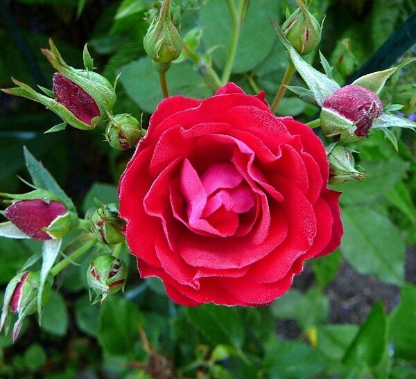 | Яркий и необычный сорт с крупными красными бутонами, украшенными мраморным рисунком в виде светлых прожилок. Лепестки плотные, бархатистые, цветы долго держатся. Крона компактная, шаровидная, отлично смотрится на высоком штамбе. Устойчива к болезням, цветёт всё лето. |