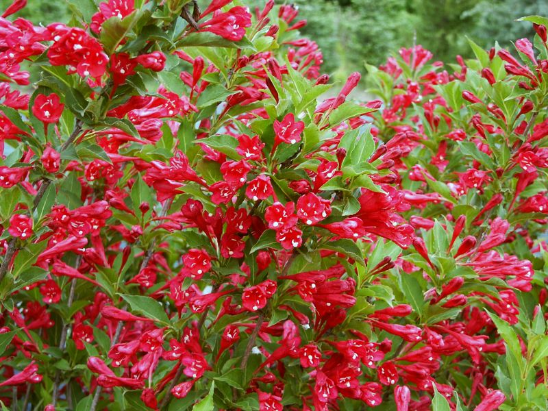 | ВЕНГЕЛА ЦВЕТУЩАЯ ЭВИТА (Evita) | Вейгела цветущая Эвита – декоративный листопадный кустарник. Растение вырастает высотой до 80 сантиметров, крона разрастается до 150 сантиметров. Листья продолговатые с неровными концами. Окрас темно-зеленого цвета. Цветы воронкообразные, яркого красного цвета с крупными тычинками желтого цвета, которые собраны в мелкие пучки. Зацветает растение в конце весны или первой половине лета. Подходящее расположение – солнечный участок. Высаживаются отдельно или в составе группы других растений для создания живых изгородей. | |