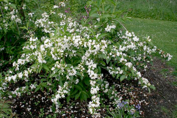 | Один из самых красивоцветущих кустарников. Особую неповторимость и оригинальность кустарнику придают белоснежные цветки. Имеет плотную, округлую форму кроны с крепкими вертикально растущими побегами. Листья небольшие глянцевые, оливково-зеленого цвета. |