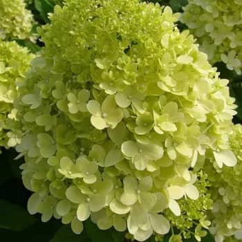 | Гортензия метельчатая "Лаймлайт" | Кустарник высотой более 1-1,5 метра с округлой кроной. Ширина до 2 м. Время цветения: Цветет с июля по сентябрь крупными ширококоническими соцветиями. Окрас цветка: Соцветия состоящие из стерильных цветков бледно-лимонного или зеленоватого цвета, затем розовеют. | |