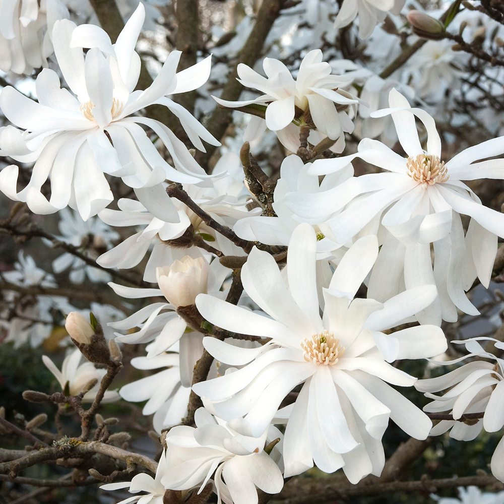 | Магнолия Звездчатая (Magnolia stellata) | Листья обратнояйцевидные 6-10 см длиной и 5 см в ширину, светло-зеленые или зеленые, блестящие. Цветение март-апрель. Цветет до распускания листьев. Звездчатые цветки с 12-15 (до 40) лепестками, белые с приятным запахом. | |