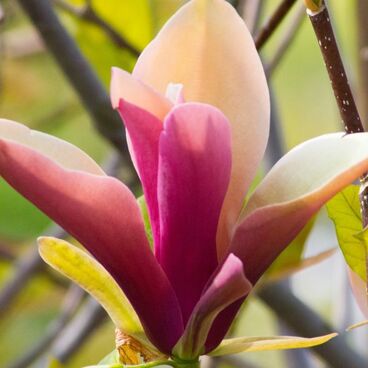 | Сорт магнолии с вертикальной формой роста до 4,5 м высотой. Цветки розово-фиолетовые снаружи и цвета слоновой кости внутри. Цветет очень обильно весной, в конце мая – начале июня, одновременно с развитием листьев. Предпочитает солнечные участки, защищенные от ветра. Сорт очень широко используют для украшения балконов и террас. |