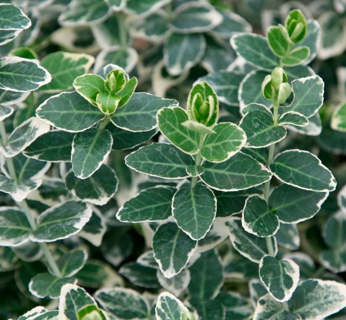 | Бересклет "Эмеральд Гаити" | Один из самых популярных сортов с зелёной листвой и белой каймой, которая зимой может приобретать розоватый оттенок. Отличается аккуратной, кустистой формой и медленным ростом. Хорошо подходит для контейнерного выращивания, бордюров и низких изгородей. Устойчив к морозу и засухе, легко переносит стрижку. | |