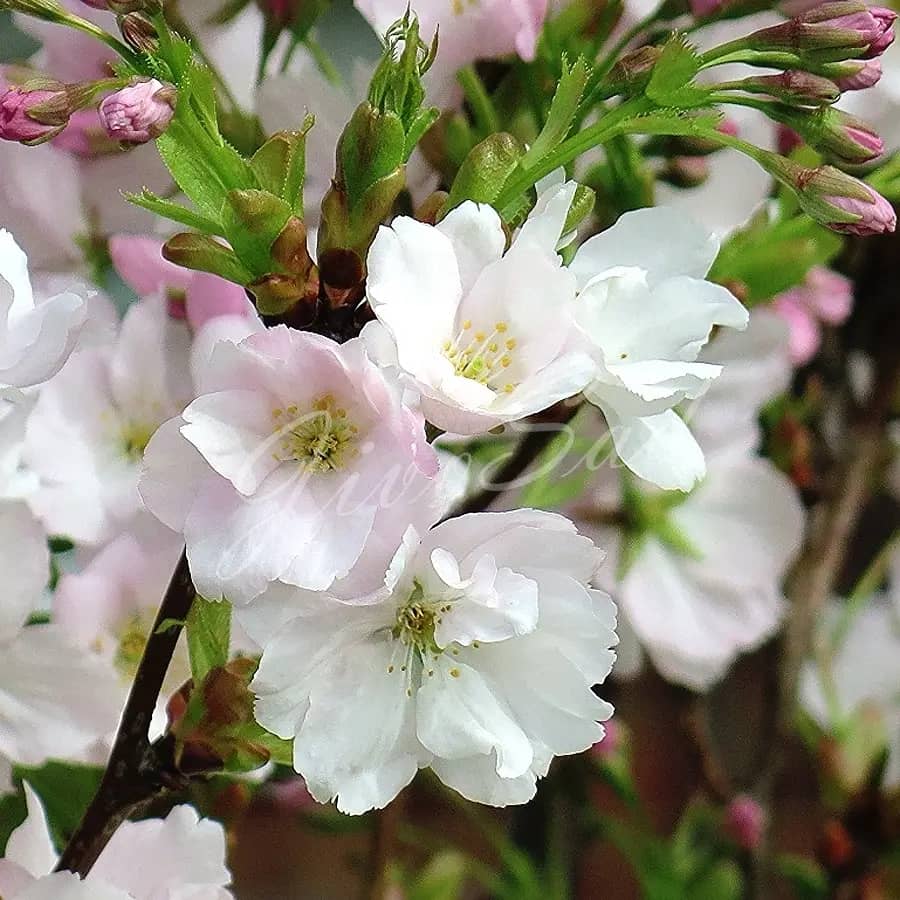 | Листья обратнояйцевидные 6-10 см длиной и 5 см в ширину, светло-зеленые или зеленые, блестящие. Цветение март-апрель. Цветет до распускания листьев. Звездчатые цветки с 12-15 (до 40) лепестками, белые с приятным запахом. |