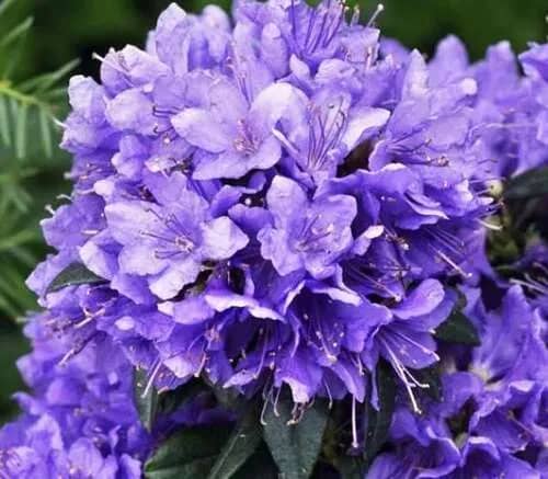 | Сиреневый "Блю тит" | Вечнозеленый, очень густой, подушкообразный кустарник. Листья мелкие широкоэллиптические, с обеих сторон чешуйчатые. Цветки мелкие, фиолетово-голубые. Один из ценнейших мелколистных и мелкоцветковых вечнозеленых видов рододендрона. Рекомендуется одиночные или групповые посадки для низких каменистых участков и альпийских горок, куртинами на газонах, в бордюрах. | |