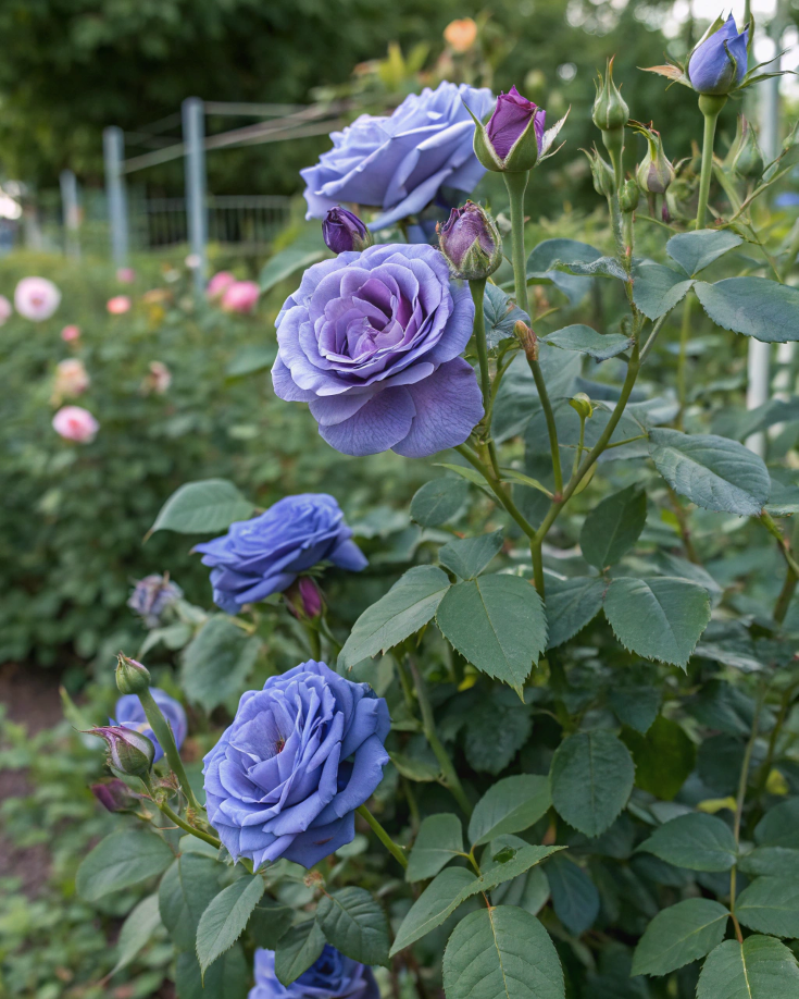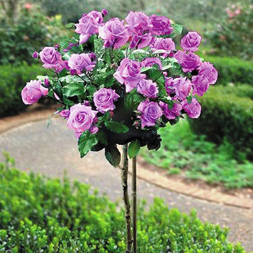 | Штамбовая роза Blue Eden | Изумительный сорт с редким лилово-сиреневым оттенком лепестков и мягким бархатным переливом. Цветы густомахровые, крупные, с легким приятным ароматом. Формирует пышную крону на высоком штамбе, которая эффектно смотрится в одиночной посадке или в композиции. Цветение длительное и обильное, волнами с начала лета до осени. | |
