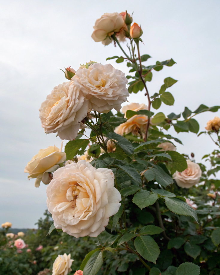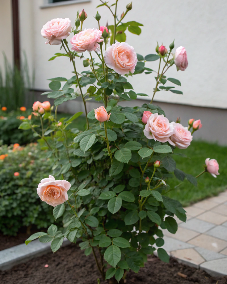 | Редкий и выразительный сорт с крупными абрикосово-розовыми бутонами и сложной окраской лепестков. Цветы раскрываются медленно, долго не осыпаются. Образует плотную крону, обильно цветёт в течение всего сезона. Идеально подходит для элегантных садов и изысканных композиций. |