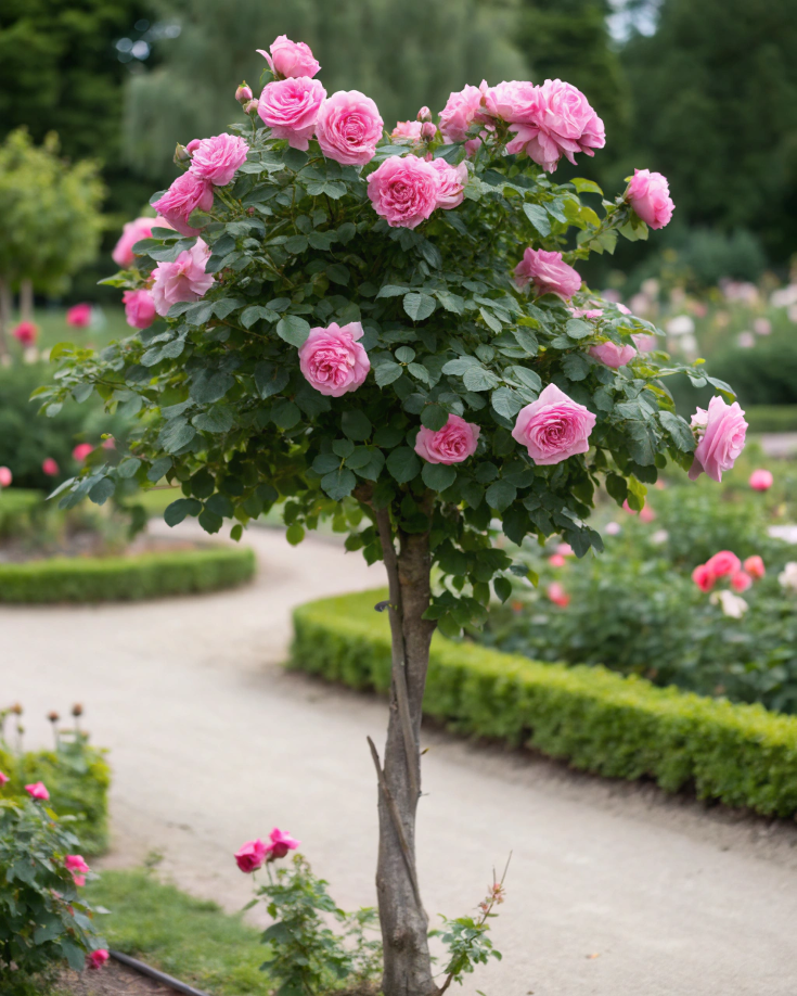 | Штамбовая роза Yves Piaget | Легендарный сорт с волнистыми, густомахровыми лепестками насыщенного розового цвета. Аромат мощный, цветочный, напоминающий чайную розу. Отличается шикарной формой и стойкостью к болезням. На штамбе выглядит особенно роскошно — настоящий акцентный элемент сада. | |