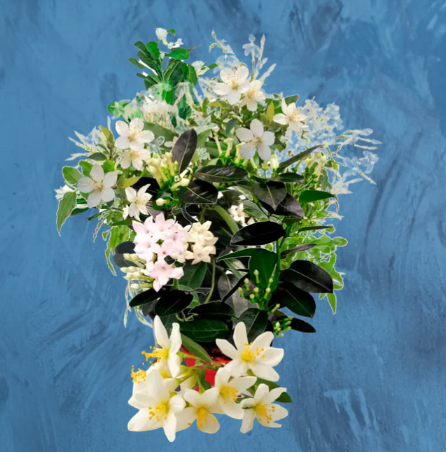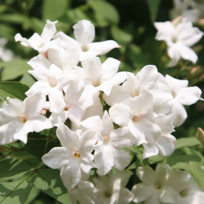 | Классический белоцветковый жасмин с нежным ароматом и множеством полезных свойств. Цветы богаты эфирными маслами, используются в народной медицине и косметике. Быстро растёт, формируя длинные побеги, хорошо подходит для вертикального озеленения. Может выращиваться в открытом грунте в тёплых регионах или в контейнерах. Предпочитает солнце, дренированную почву и умеренный полив. |