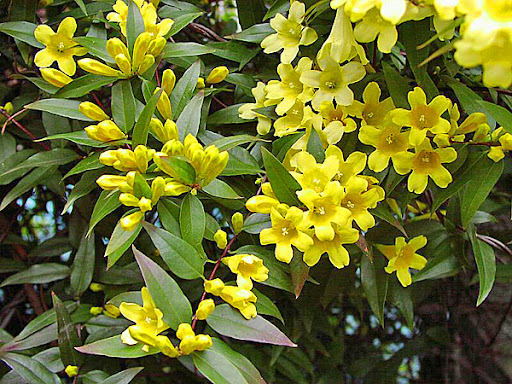 | Жасмин "Голоцветковый" | Изящный кустарник с ярко-жёлтыми цветками, который цветёт ранней весной — ещё до появления листьев. Благодаря этому создаёт эффект "цветущих ветвей на снегу". Идеален для альпинариев, подпорных стенок и контейнерного выращивания. Не требует особого ухода, устойчив к засухе и морозам до –37 °C. Побеги тонкие, красиво свисают, особенно эффектно смотрятся в кашпо и на склонах. | |