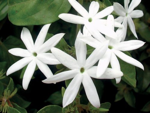 | Жасмин Крупноцветковый | Один из самых ароматных видов — цветы крупные, белоснежные, с сильным, насыщенным ароматом. Цветёт всё лето и часто до осени. Идеален для посадки в горшках, на верандах и балконах. Требует солнечного места и регулярного полива. Часто используется в парфюмерии и для заваривания ароматного чая. | |