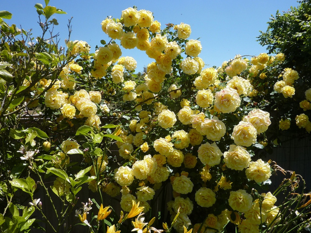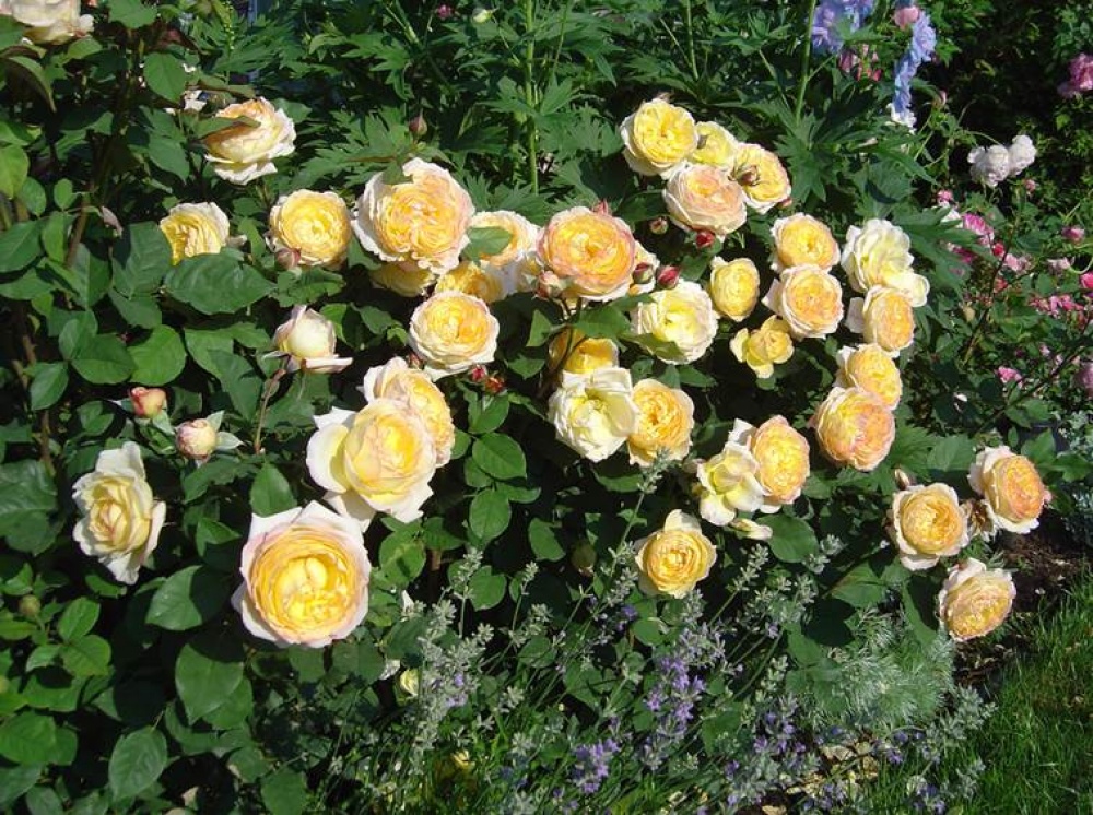 Роза Казино (Casino) - крупный плетистый сорт от ирландских селекционеров. Полностью раскрывшиеся цветки очень выразительные. Лимонно-желтые внутренние мелкие лепестки красиво обрамлены более крупными и бледными внешними (см. фото). Бутоны удлиненные, как у чайно-гибридных роз. В первом цветении - роза дает множество крупных одиночные бутонов. В повторных - цветет пышными соцветиями. Аромат довольно сильный, фруктовый. Куст розы Казино - жесткий, с прямыми побегами и очень здоровой крупной листвой. Даже на полном солнце бутон держится на кусте не меньше недели, а в полутени, по отзывам, до 10 дней.