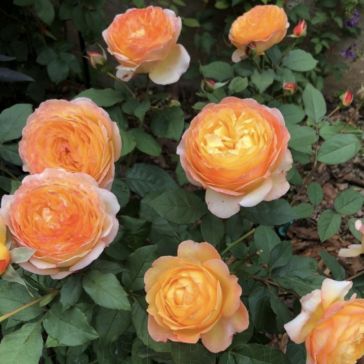 Это не просто роза, а произведение искусства. Цветки крупные, до 12 см в диаметре, листья очень плотные, имеют сильный запах. Бутоны темно-оранжевые, слегка острые. Каждый цветок имеет более восьми-десяти розовых лепестков ярко-оранжевого цвета, плотно прижатых друг к другу. Этот букет роз словно сошёл со старинной картины. Взрослое растение имеет одновременно до 200 цветков и бутонов. Кусты слегка раскидистые и быстро растут.