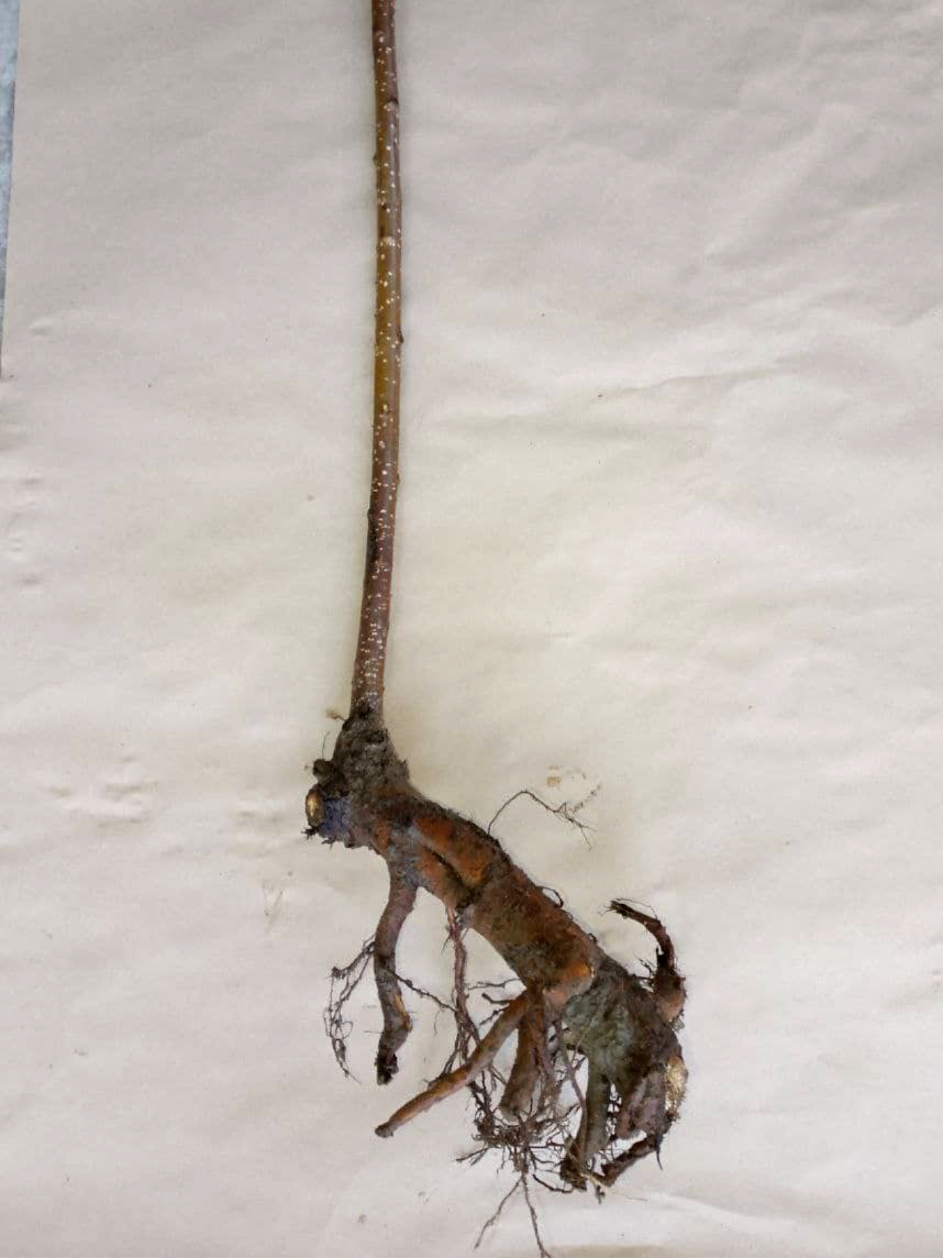 Вы можете убедиться в том, что саженец живой, аккуратно царапнув его корень. Под тёмной кожицей вы увидите белый, влажный молодой ствол, что свидетельствует о здоровье растения.